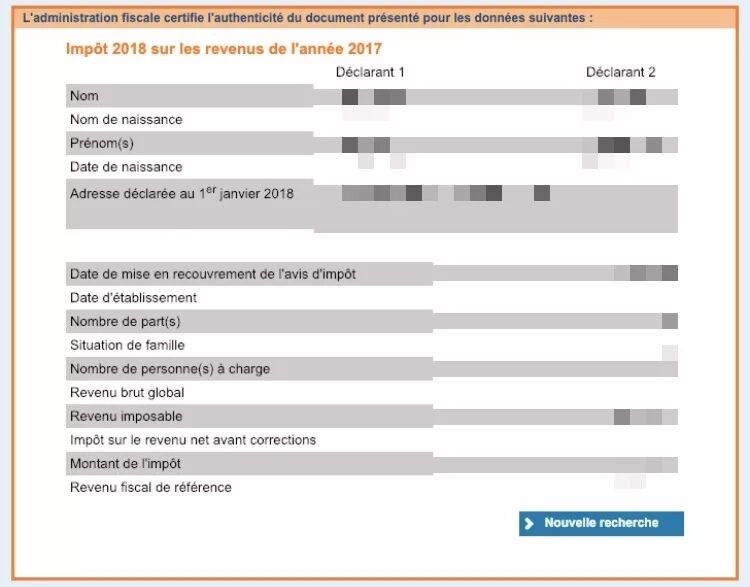 在法国一些财政部专用的站点上可以验证税单的准确性。如果房客提供的税单信息是准确的,则可以直接访问租户的信息。